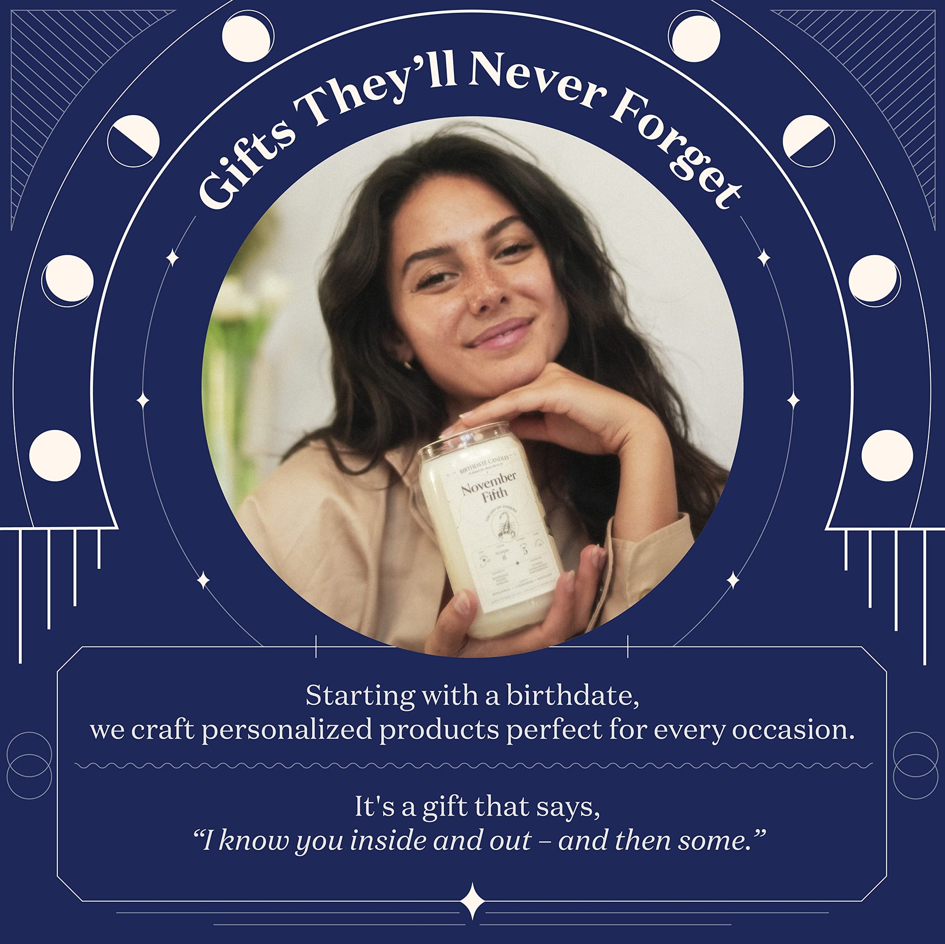 - Gifts They’ll Never Forget: From beautiful, scented candles that are individually crafted for every day of the year to custom hardcover books that illustrate unique astrological birth charts, Birthdate Co. crafts perfectly personalized treasures made just for you or your loved ones. It’s the perfect gift that says, "I know you inside and out – and then some.”